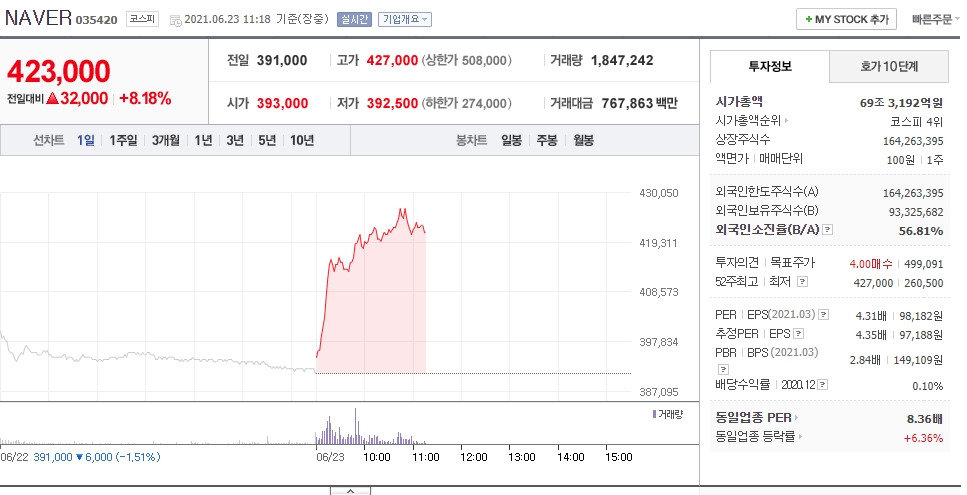 네이버 주가 - 인베스트조선 흘러내리는 네이버 주가…'액분으로 우려 못 ... : 카카오·네이버 내가 동남아 웹툰 1위…경쟁 후끈.